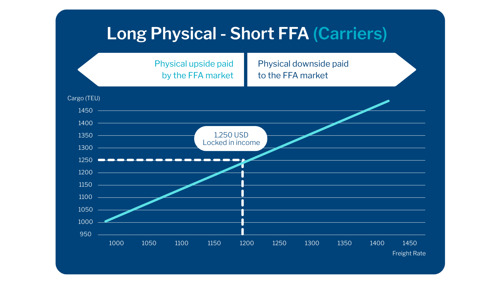 Put in simple terms, if you are a Shipowner, you are considered long freight i.e. you have possession of the physical freight (ships) and will be concerned with the value of freight falling. Therefore, in the forward market you will hedge by selling a forward contract – creating an opposing short position.