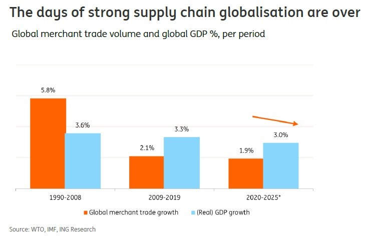 The rapid globalisation of the 1990s, which brought economic benefits, also created deep-seated dependencies that are now being viewed as liabilities. As nations prioritise risk management over pure efficiency, trade growth is increasingly lagging behind overall GDP growth, a trend that has been building for several years but is now being accelerated by rising protectionism.